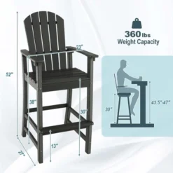 Costway Outdoor HDPE Bar Height Stool Patio Tall Chair Armrest Footrest All Weather