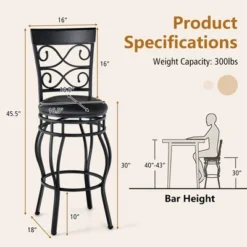 Costway Set Of 2/4 Vintage Swivel Bar Stools 30” Bistro Upholstered Dining Chairs Black